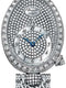 Reine de Naples wristwatch in 18-carat white gold. Bezel, dial flange and lug set with 139 diamonds totaling approx. 1.32 cts. Self-winding movement. Balance spring in silicon. White natural mother-of-pearl dial. Off-centred chapter ring with Roman numerals. Sapphire case back. Water-resistant to 3 bar ( 30 m ). Dimensions : 33 x 24.95 mm. Also in yellow gold and rose gold. Available with satin bracelet.