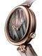 Case in 18-carat rose gold, cambered ovoid with a delicately fluted caseband. Crown set with a briolette diamond (approx. 0,15 ct). Attachment set with 16 brilliant-cut diamonds (approx. 0,08 ct). Sapphire-crystal caseback. Dimensions 32.7 x 27.3mm. Water resistant to 3 bar (30m). Dial in Tahitian mother-of-pearl. Off-centre chapter ring at 6 o'clock with Roman numerals in Tahitian mother-of-pearl marquetry. Self-winding movement. Cal. 586/1. 40 hours power reserve. In-line Swiss lever escapement. Breguet balance on a silicon spring. Balance frequency 3Hz.