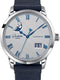 This Senator Excellence Panorama Date Moon Phase presents itself in a stainless steel case with a diameter of 40 mm and impresses with its clear and functional design. Polished and satin-finished surfaces on the case reflect the light, while the finely fluted crown is adorned with the brand’s typical double-G logo. A blue Louisiana alligator leather strap, a robust blue synthetic strap with double-folding clasp or a stainless steel bracelet complete the overall look of this stylish timepiece.