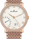 Several options of the new Villeret Grande Date Jour Rétrograde are being offered: red gold with silver opaline dial, stainless steel with white dial, and for both, a choice of alligator strap or metal bracelet. All versions are 40 mm in diameter.