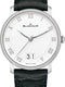VILLERET, LARGE DATE, SILICON AIRSPRING, Caliber 6950, white steel, Opalin Dial, Saphire case, Self-winding, 72 hours power-reserve, 40 mm Diameter, Large date at 6, Alligator Leather strap.
