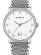 VILLERET, LARGE DATE, SILICON AIRSPRING, Caliber 6950, white steel, Opalin Dial, Saphire case, Self-winding, 72 hours power-reserve, 40 mm Diameter, Large date at 6, mille mailles strap.