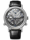 Case in 18-carat white gold with delicately fluted caseband. Sapphire-crystal caseback. 44mm diameter. Welded lugs with screw bars. Water resistant to 3 bar (30m). Dial in silvered 18-carat gold, engine-turned and offset at 12 o'clock. Individually numbered and signed Breguet. Hours chapter with Roman numerals. Power reserve indicator at 2 o'clock and 20-minute counter at 10 o'clock. Breguet open-tipped hands in blued steel. Hand-wound chronograph movement numbered and signed Breguet. Power reserve indicator and 20-minute counter engraved on the back of the movement. Chronograph running indicator at 6 o'clock. Cal. 580DR. 16 lignes, 62 jewels. 50 hours power reserve. Symmetrical inverted in-line lever escapements with silicon pallets. Breguet balance-wheels on Breguet springs in silicon. Movement frequency 3Hz; chronograph frequency 5Hz. The two oscillators are adjusted in six positions. Leather strap. Also available in 18-carat rose gold: Reference 7077BR/G1/9XV